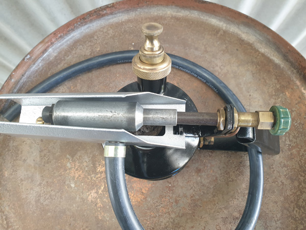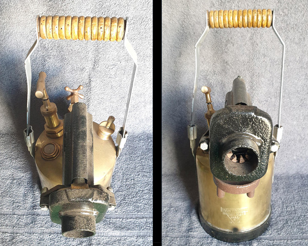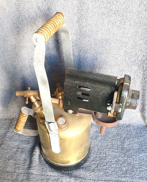 Notes: A very solid and sturdily made blowlamp. The weight of 1247g empty is noticeably heavier than many other 1 pt blowlamps. The design incorporates a twin coil to reduce carbon build up. All the seams are brazed, not soldered. Model 2A had a vertical burner.