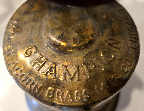 Notes: A very old blowtorch from the collection of Dwayne Hanson. The Champion model was made in two sizes; pint and quart. An acorn feature is on the top of their pumps.