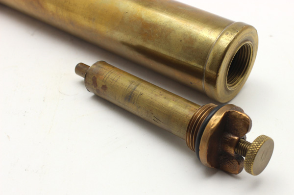 Notes: This is one of the larger Bernz brazing torches and an optional hose extension kit was available for the model. The ornate pump knob is shown above (middle image). A similar 1 gallon model also exists. The filling plug (lower image) was in the base and the steel tank has weathered the years very well.