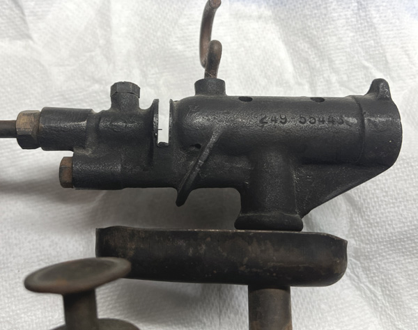 Notes: This popular blowtorch, made in Rochester, NY was advertised in the forties as a Gasoline-kerosene model, but a separate ‘jet block’ marked ‘K’ needed to be requested for using kerosene. The valve on the 250A has a self-cleaning needle pin which cleans the orifice every time the torch is used. This torch is in Dean Dorholt’s collection and is a bottom filled unit through its funnel base (lower image). A wind-proof shield is fitted over the burner. The tank is steel but later 250A models had brass tanks and ribbed handles. The model 500 was the equivalent quart sized torch.
