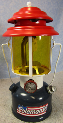 Person(s) unknown assembled this light for night fishing in the many lakes in northern New York near Lake Ontario. The assembly includes a hollow wire tank, burners from a Quick-Lite and early 220 Coleman lanterns, a street lamp shade and 236/237 Coleman ventilator. This light is in Roger Haynal’s collection.