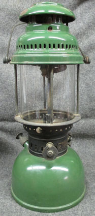 This Petromax 2826 was manufactured during WWII. It has a green painted steel fount. After the war, production returned to Model 826; see the lantern below. This lantern is in James McGuire’s collection.