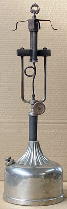 This Graetzin 915H lamp was made by Ehrich & Graetz, Berlin, Germany, circa 1910-15. It is a 90 cp, alcohol gravity lamp. The donut tank holds 1.5 liters and will burn for 10 hours, according to its owner, Roland Loos.