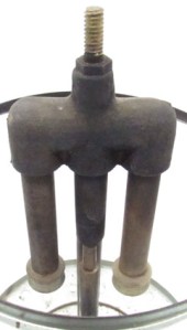This unknown lantern model is stamped Unimet and Made in Hong Kong on the fount. The tag on the base rest only states 500 C P. This petromax style lantern, in Agostino Del Coro’s collection, has two unusual features: 1. the top of the rapid preheater is beveled to help direct the flame to the top of the generator (middle image) and 2. the pressure release screw is directed to the central axis rather than parallel to the body of the pressure gauge (bottom image).