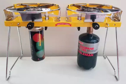 The Brinkmann Corporation also has this all stainless steel propane two burner stove. Brien Page, whose collection this is in, did not have a propane cylinder attached when he took this image.