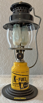This Model KFL-4Â is a two mantle model, rather than having just one mantle as Model KFL-3 above. Models KFL-3 and KFL-4 appear in AGM’s K Appliances Repair Parts & Service Catalog dated 1959. This lantern is in Danny Vallejo’s collection.