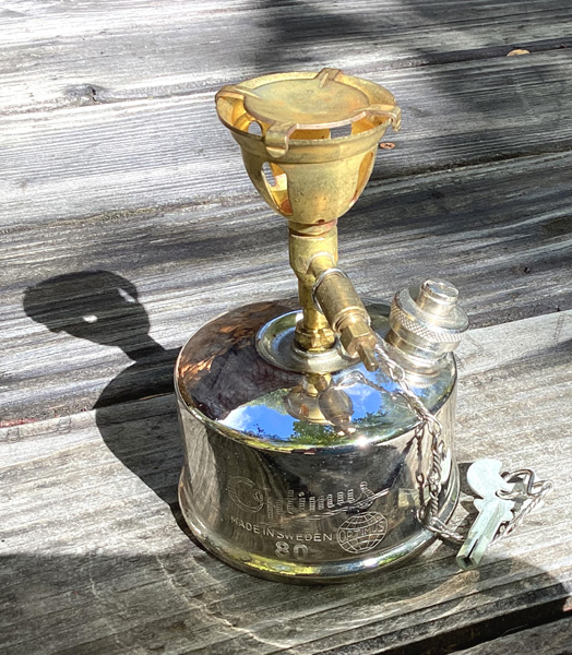 This Model 71E Primus brand stove was made in 1948. Older Primus products are stamped on the bottom with a letter code for the year, in this case, AM. This stove, which burns white gas, is in Jorgen Svensson’s collection.