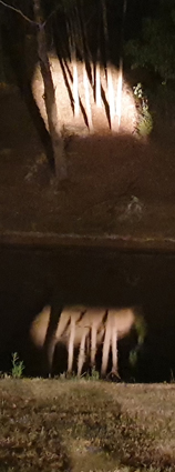 This Searchlight Projector may be the only one of its kind. Tilley shipped it to Australia in 1939 with other Tilley models to promote their lighting products. In the promotional literature the lamp was rated at 100,000cp and capable of projecting a beam for a mile. It was seen by many as it was demonstrated in Tasmania and Victoria, Australia. The lamp, dubbed “Big Bertha” by author Jim Dick, has a 24” diameter reflector (top image) and can be seen lighting trees across a pond about 50-60 m distant in the bottom image. This lamp is in Anthony Trueman’s collection.