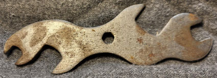 These two wrenches came with a Continental-Licht Model 4615S searchlight lantern in Erik Leger’s collection. The upper wrench is 115mm long and has 19.3 and 8mm openings. The lower wrench is 130mm long and has 13 and 8 mm openings.