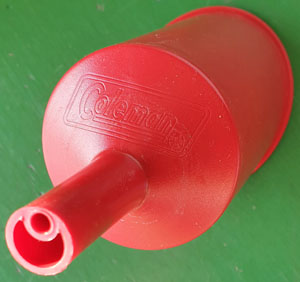 This early Canadian Coleman No. 0 filter funnel was probably made between 1933 and 1945. The funnel is in Tyler Hawthorne’s collection and was made from aluminum. A filtering pad is usually located inside the funnel to remove fine particles from the fuel.