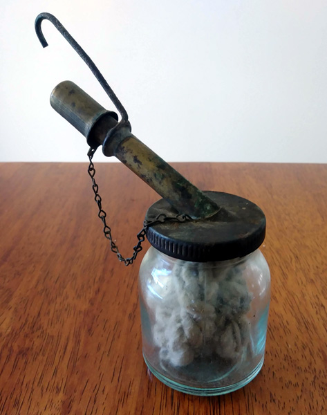 This spirit/alcohol preheater can came with an AIDA Model 233 lantern in Ralph Trask’s collection. Note the antlered deer logo that signifies the AIDA brand.
